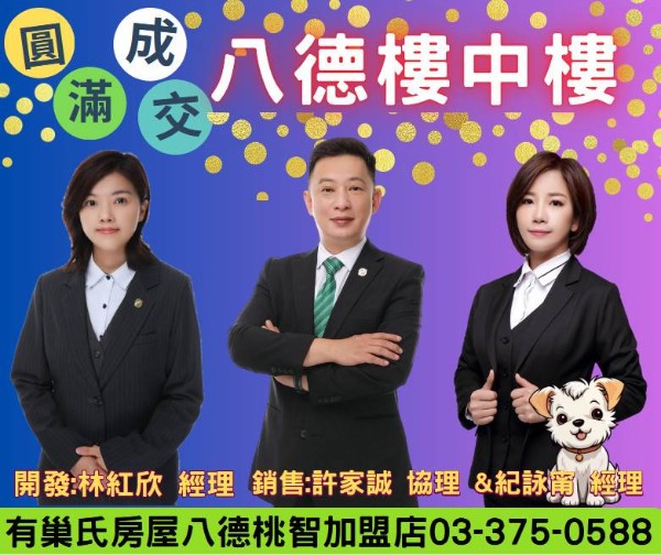 發佈: 2023/10/18 點閱: 197 合作冒泡:林虹欣 經理 & 許吉慶 經理 & 紀詠甯 經理賀賀賀~~恭喜成交!!八德在地經營10餘年,店基最穩固,房仲&商仲案源齊全,成交最快速。新時代房仲, 與其單打獨鬥, 不如團隊合作!☆ 公司每月補助個人行銷廣告預算☆ 總部四大品牌強大聯賣系統☆ 公司提供多元化網路平台曝光協銷☆ 房仲/商仲並行, 創富機會有一席歡迎您的加入 ...請洽: 0927-220-258 許協理