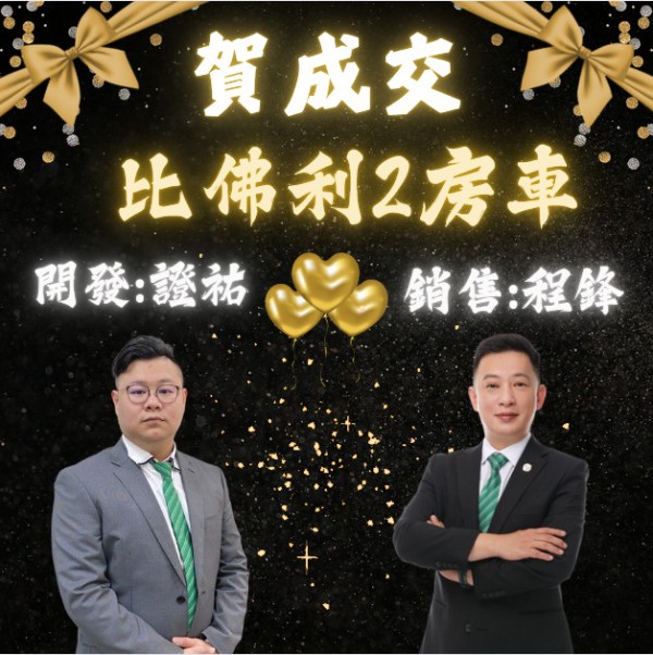 發佈: 2024/08/09 點閱: 276 賀賀賀~~恭喜成交 比佛利兩房車合作冒泡 許程鋒協理/黃證祐經理『八德在地經營10餘年,店基最穩固,房仲&商仲案源齊全,成交最快速。』新時代房仲, 與其單打獨鬥, 不如團隊合作! ☆ 公司每月補助個人行銷廣告預算 ☆ 總部四大品牌強大聯賣系統 ☆ 公司提供多元化網路平台曝光協銷 ☆ 房仲/商仲並行, 創富機會有一席 歡迎您的加入 ... 請洽: 03-3750588 忠誠不動產團隊