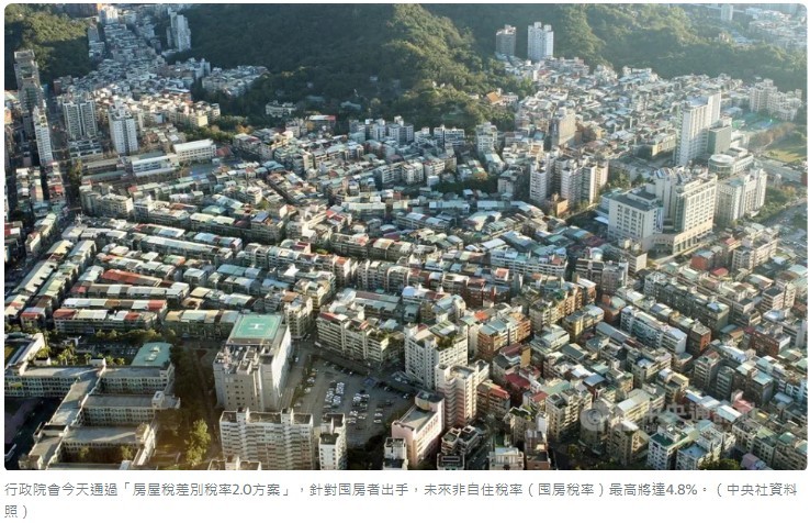 行政院會今天通過「房屋稅差別稅率2.0方案」,針對囤房者出手,未來非自住稅率(囤房稅率)最高將達4.8%,且從「縣市歸戶」改為「全國總歸戶」,讓囤房者無法規避賦稅。後續修法將先送行政院會討論,通過後再送立法院審議,若順利三讀,預計民國113年7月實施新制,114年5月正式開徵。